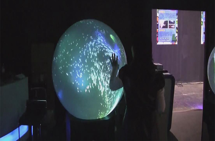 3、投影畫(huà)面投射到透明的投影幕,看起來(lái)就像是一個(gè)真實(shí)的球體在運(yùn)動(dòng)。